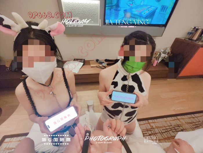 最终选了两套奶牛装,这时我和Y牵着各自的小母狗来了张全家福