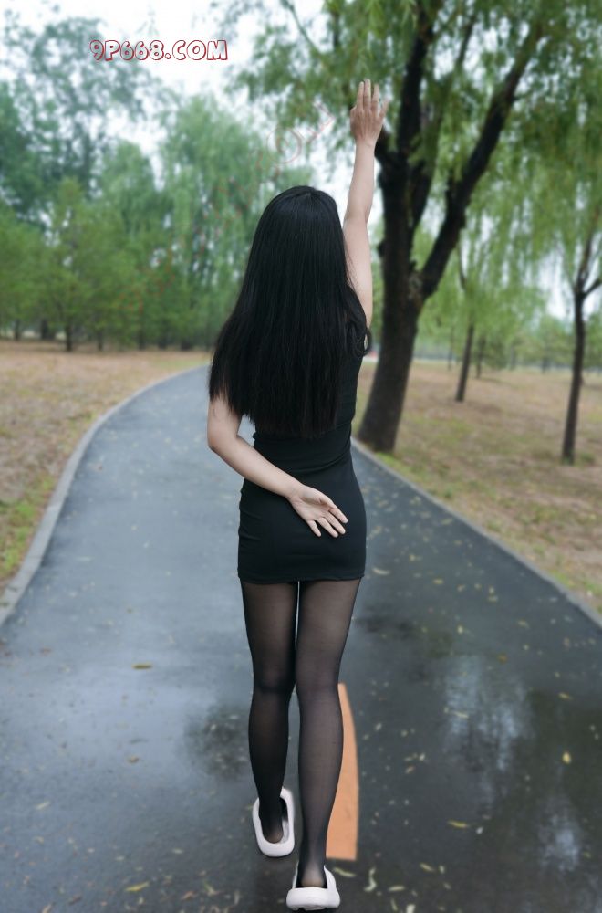 大白天的,公园这么多人!真要让我穿这条开档黑丝拍照呀?羞死人啦!